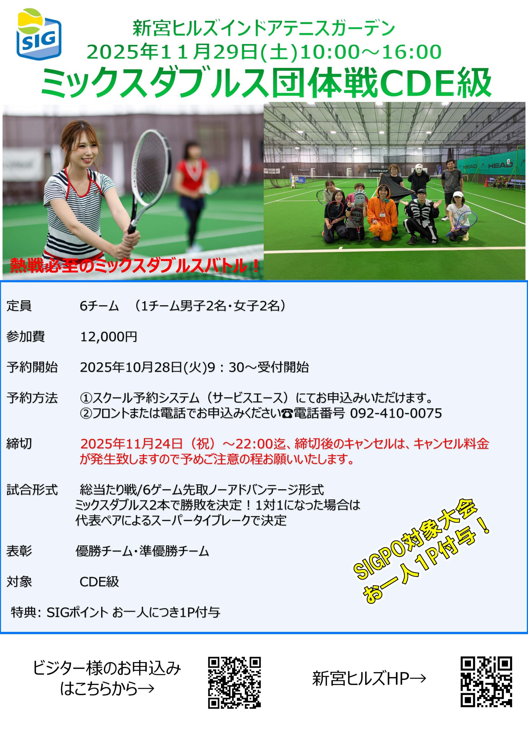 新宮ヒルズインドアテニスガーデンでは11月29日土曜日に、ミックスダブルスの団体戦を開催いたします!